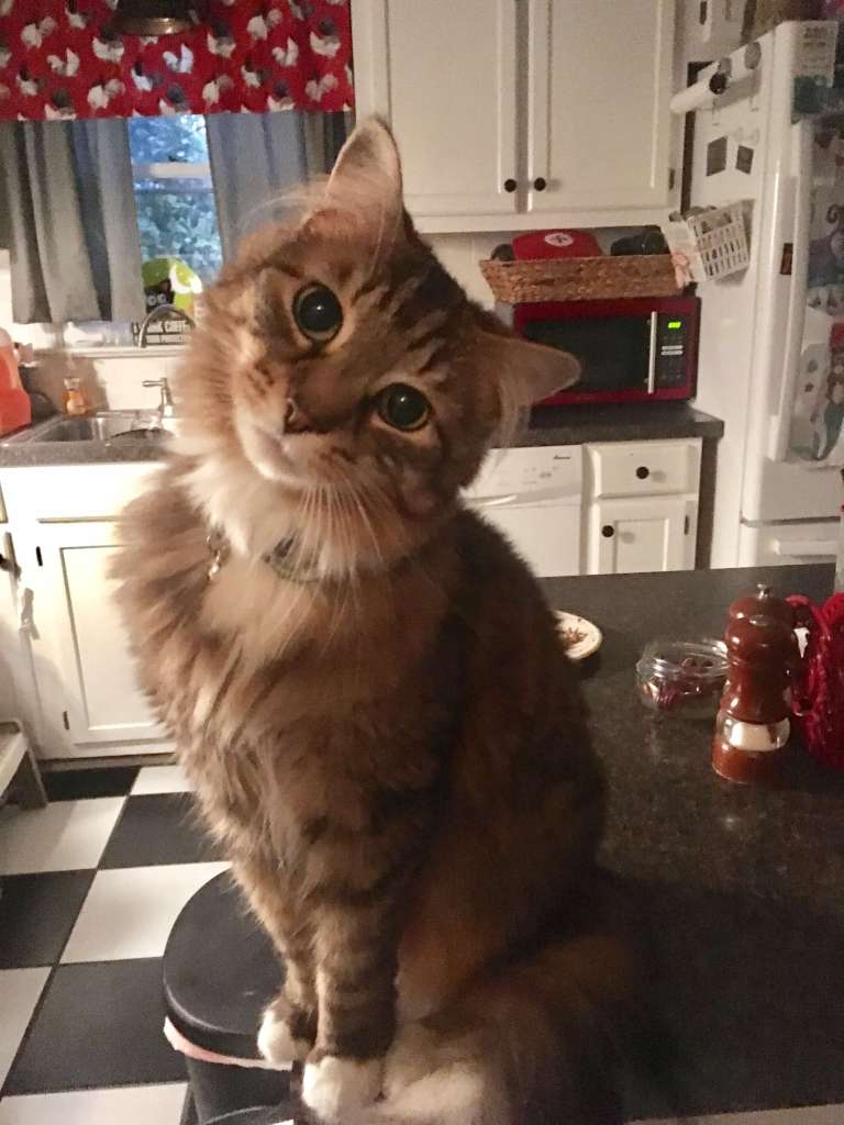 YES–LuLu is a real cat! She and her sister Trixie were adopted when a not-so-nice person left a box of kittens at the doorstep of the place where my sister-in-law (an amazing dog groomer) worked at that time.